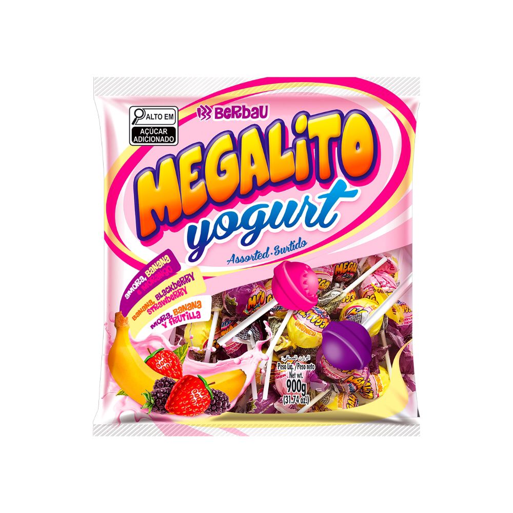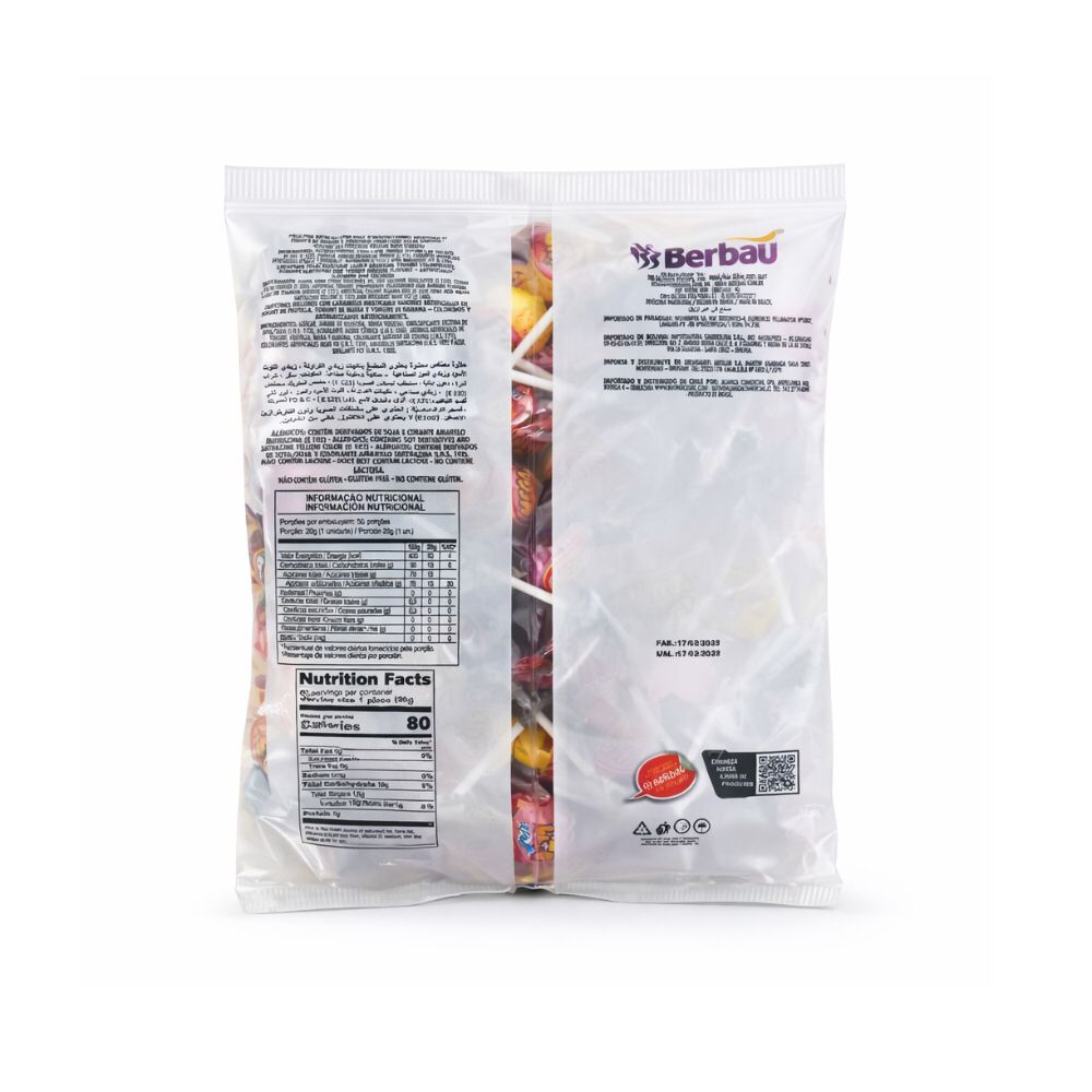 El paquete contiene 50 unidades de 20 g cada una. Ingredientes: Azúcar, jarabe de glucosa, grasa vegetal, emulsificante lecitina de soya, acidulante ácido cítrico, colorante dioxido titanio, colorante artificial rojo, amarillo tartrazina y azul brillante, aroma artificial de yogurt, frutilla, mora y banana. País de origen: Brasil |