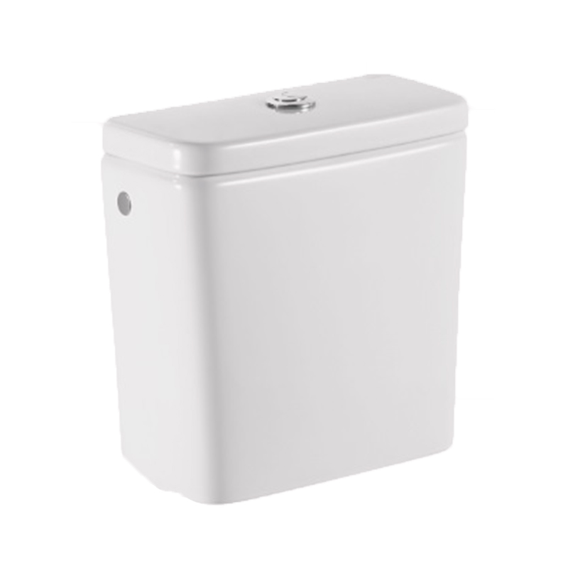 Tanque con tapa, juego fijación y mecanismo doble pulsador 4.5/3 litros alimentación, inferior blanco.